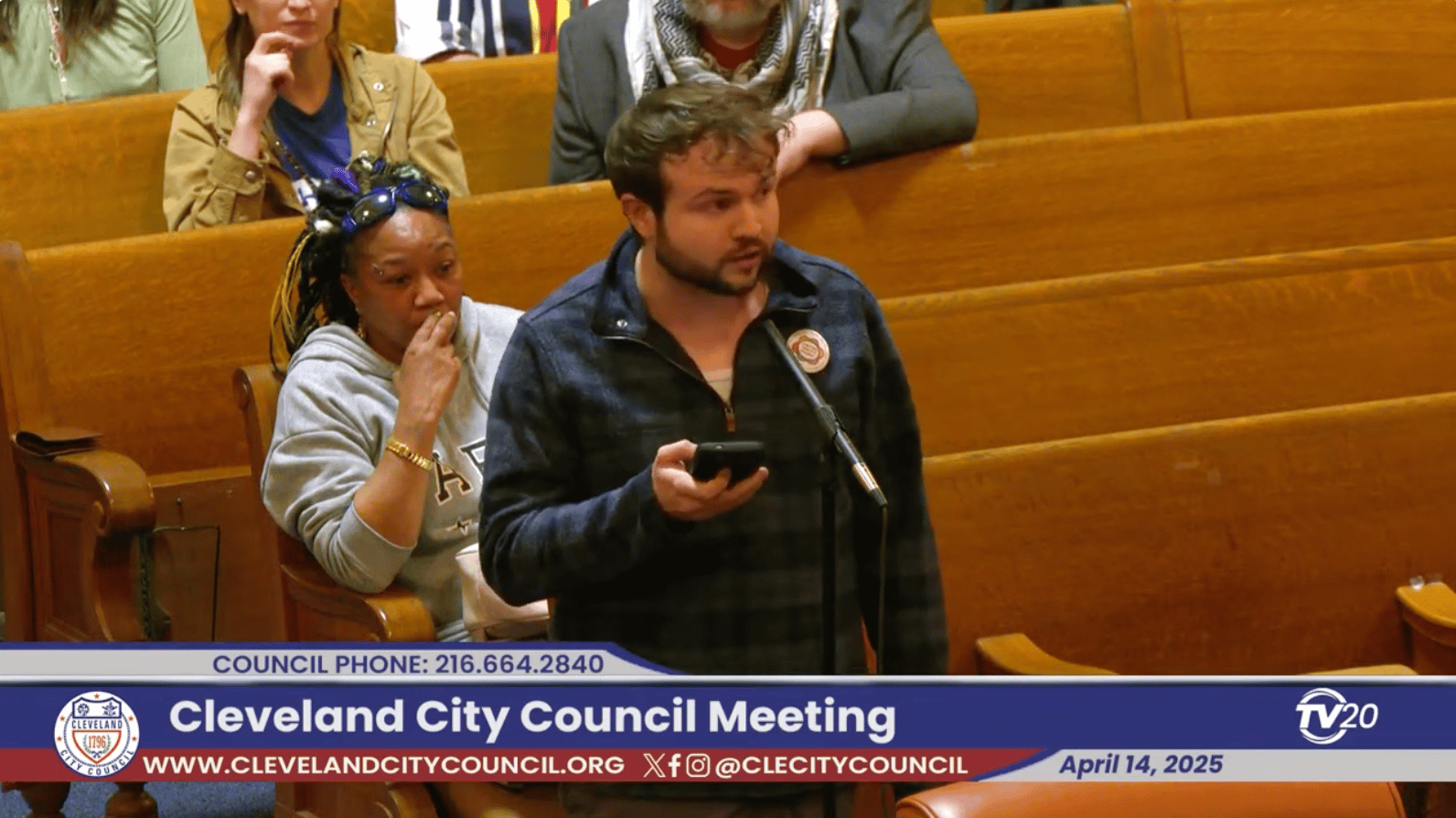 Dallas Eckman giving public comment on April 14, 2025. Credit: Cleveland City Council YouTube/TV20